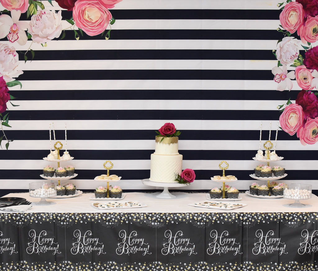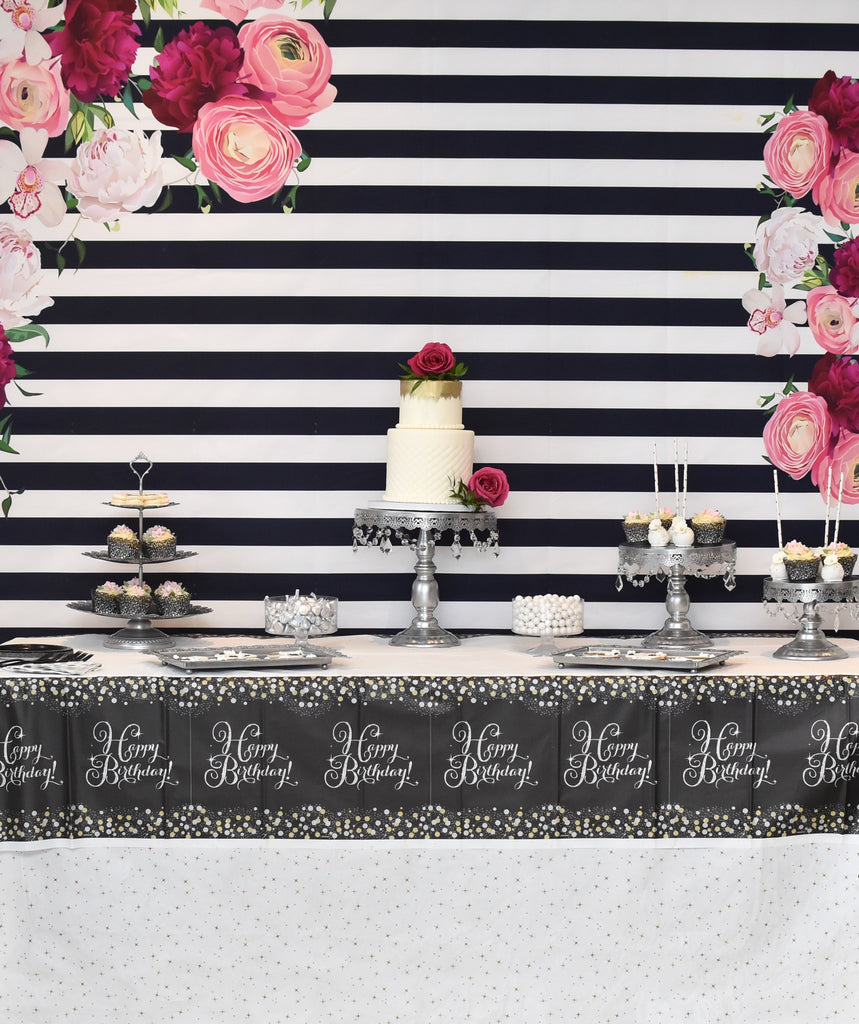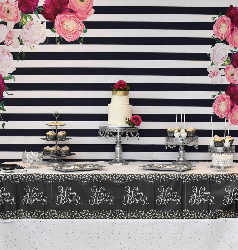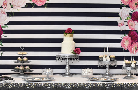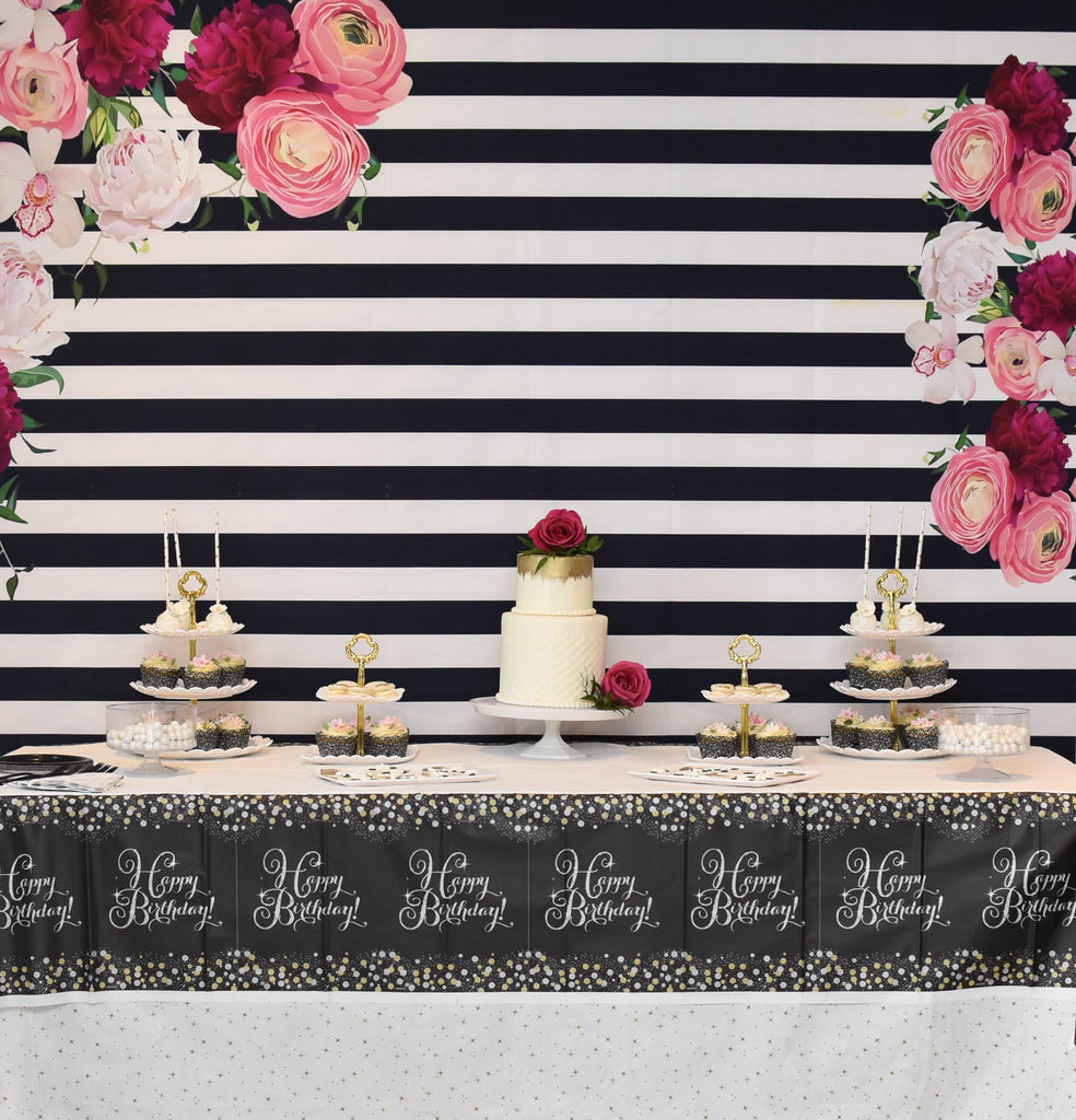 - 7 feet X 5 feet Black and White Stripe Vinyl Floral backdrop