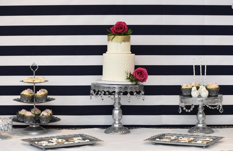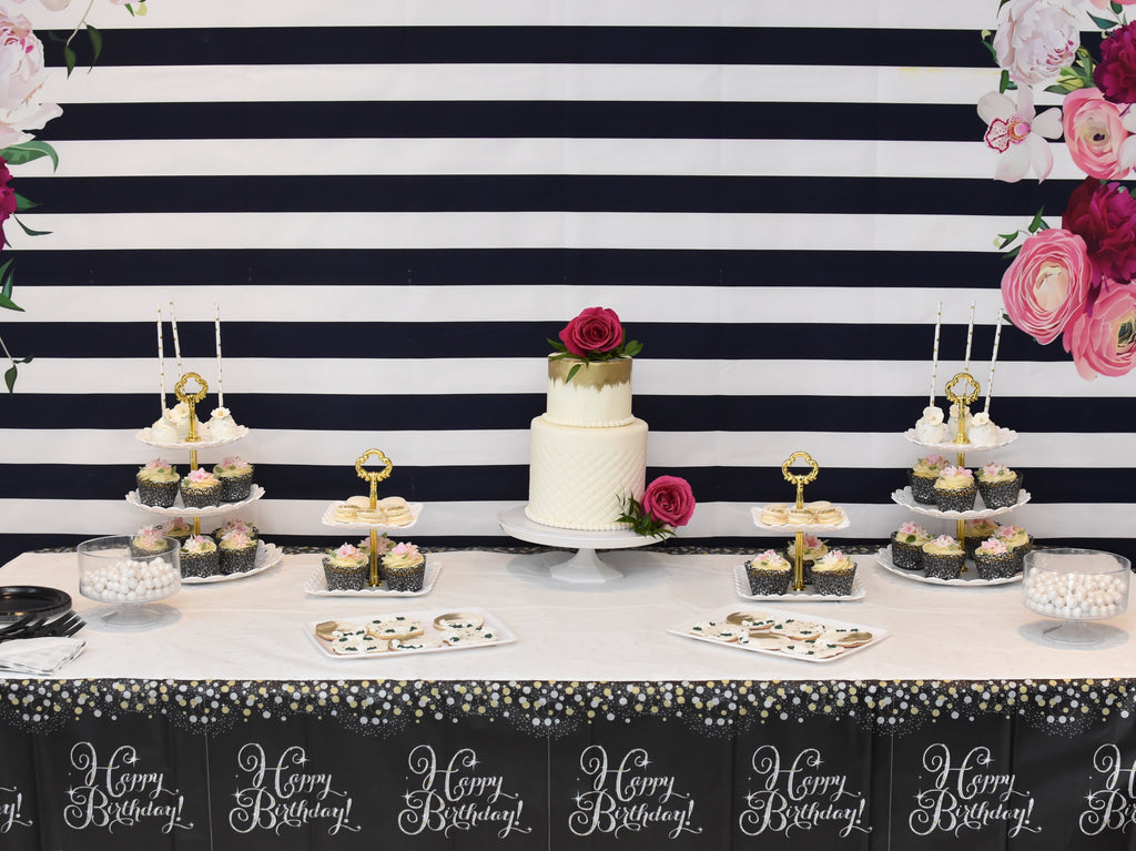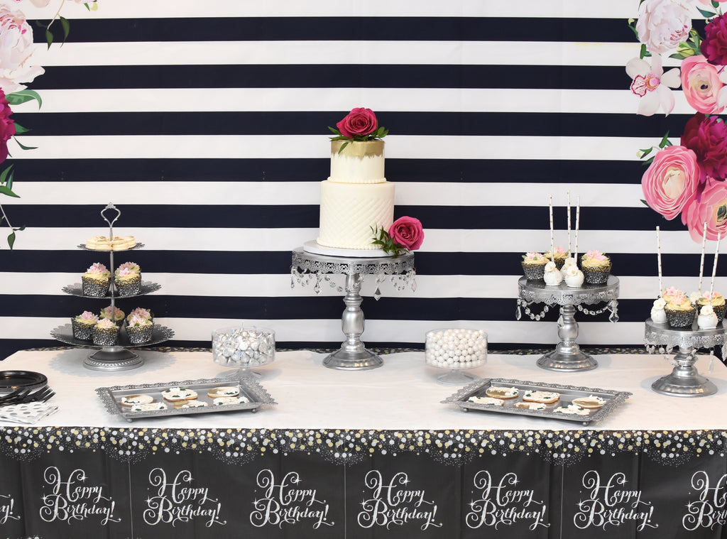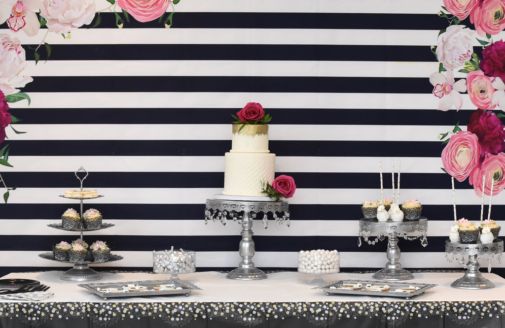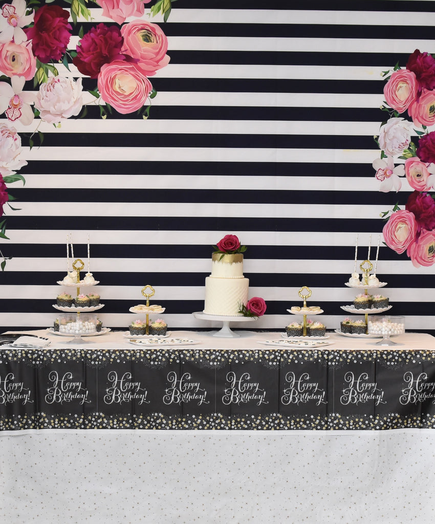 - 7 feet X 5 feet Black and White Stripe Vinyl Floral backdrop