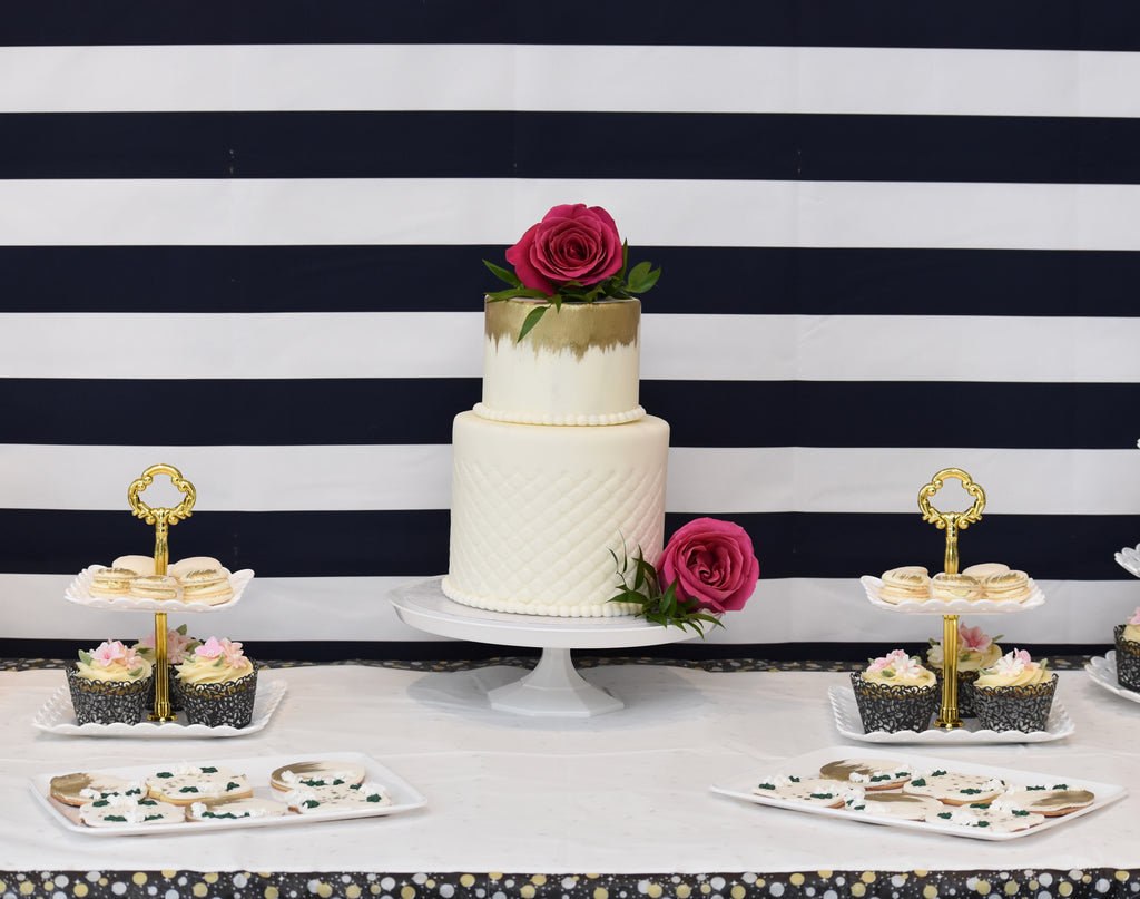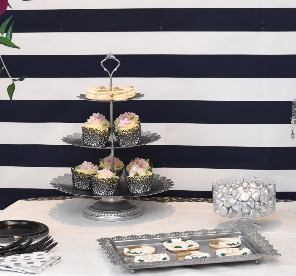 - Three tier square white plastic cupcake stands with gold handles ( Converted to two tier as shown in the picture) (x2)